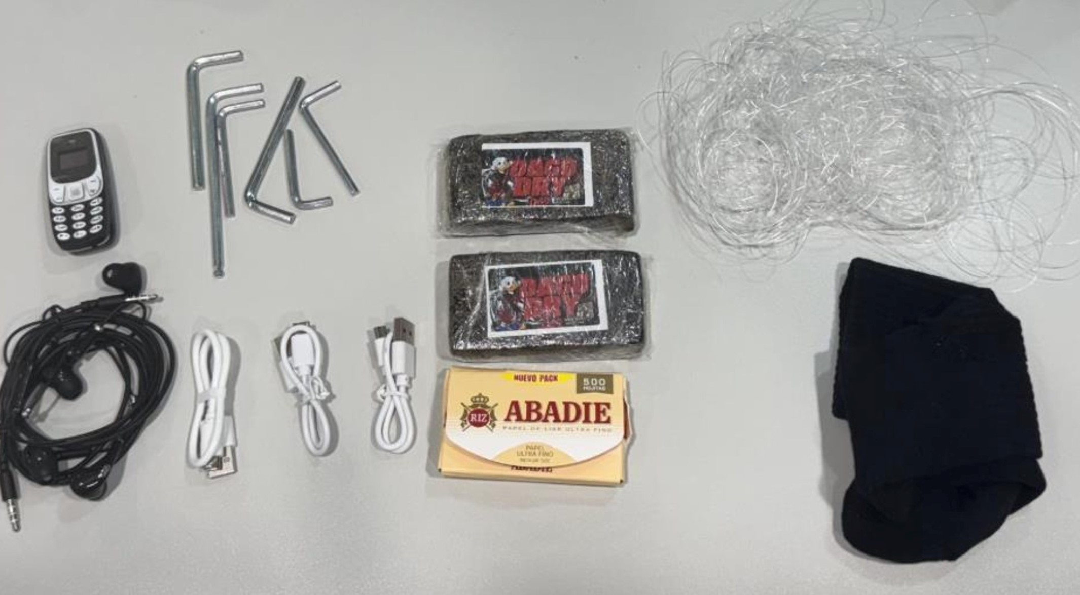 Imagen de los artículos incautados por los Mossos tras la detención del hombre acusado de introducir drogas y móviles en Brians 1 con un dron.