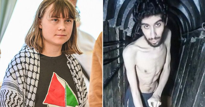 🇵🇸🇮🇱 | Greta Thunberg quiso denunciar el sufrimiento palestino, pero usó la foto de un rehén israelí hambriento. pic.twitter.com/WxjJx9F1Dh