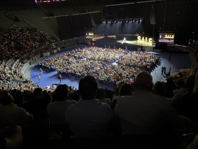 Demostración de fuerza en Vistalegre. Alvise Pérez ha llenado el palacio de congresos para afianzar su proyecto político pese al silencio mediático entorno al acto y su convocatoria. El eurodiputado ha llegado bajo gritos de “Presidente”, recordando al estilo Milei y sus ya habituales baños de masas a lo rockstar.