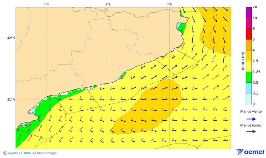 La previsión marítima de AEMET para la costa catalana ya reflejaba hoy, viernes, tramontana y mar de fondo en el norte de Girona (fuerza 7–8 y olas de hasta 3 m, amainando por la noche), señal de un patrón más dinámico en el litoral.
