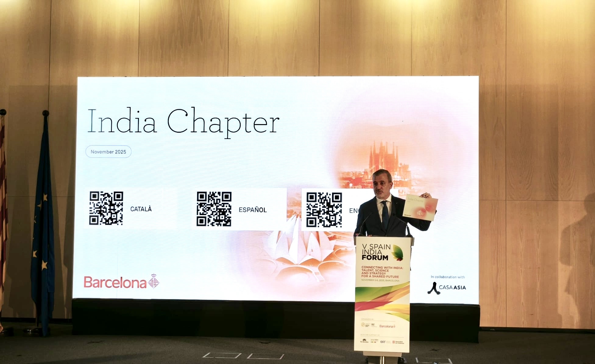 El alcalde de Barcelona, Jaume Collboni, durante la presentación de la iniciativa Capítulo India, para fortalecer los lazos de la capital catalana con ese país (Casa Asia).