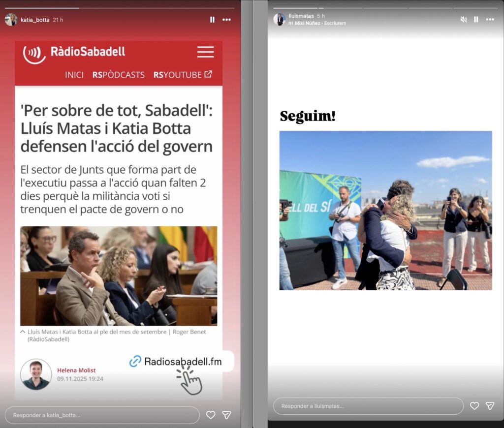 Perfiles en Instagram de los concejales de Junts en Sabadell, Lluís Matas y Katia Botta.