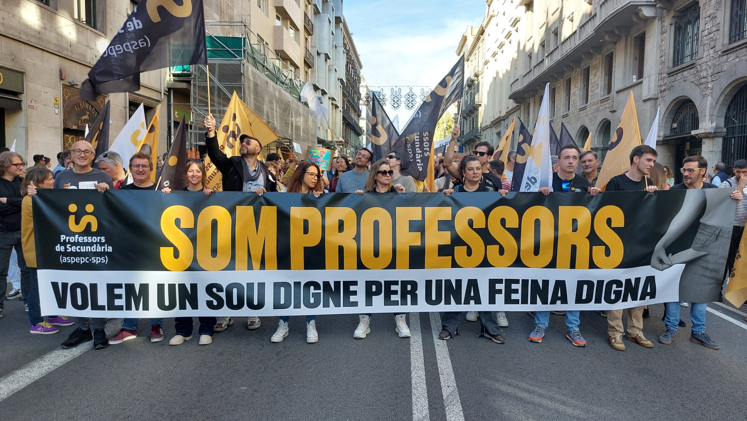 30.000 docentes presionan a la Generalitat en la calle hoy — mientras exigen más salario y menos alumnos por aula en Barcelona.