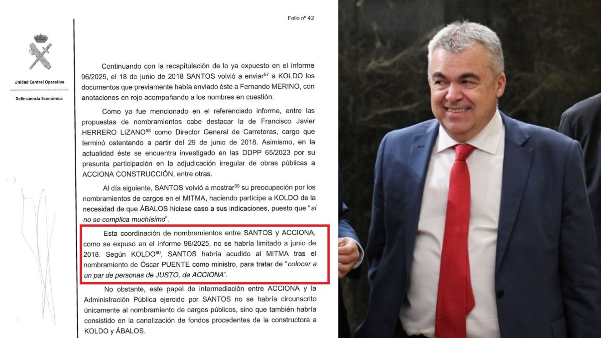 El nuevo informe de la Unidad Central Operativa (UCO) de la Guardia Civil, incorporado a una pieza separada en el Tribunal Supremo, sitúa presuntamente a Santos Cerdán en la cúspide de una red de comisiones del 2% ligada a grandes adjudicaciones de Acciona. Según ese documento, el ex secretario de Organización del PSOE habría actuado como “enlace” entre directivos de la constructora y el Ministerio de Transportes en la etapa de José Luis Ábalos, a cambio de porcentajes sobre obras públicas señaladas como amañadas.