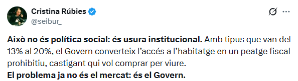 La opinadora @seibur_ califica los tipos del 13-20% de «usura institucional» que castiga el acceso a la vivienda