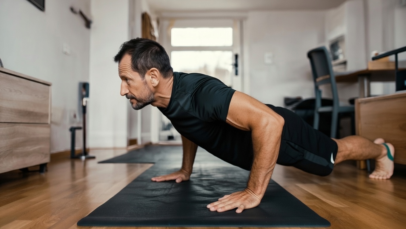 - Una sesión semanal de HIIT corto (20 minutos): burpees, mountain climbers y saltos.