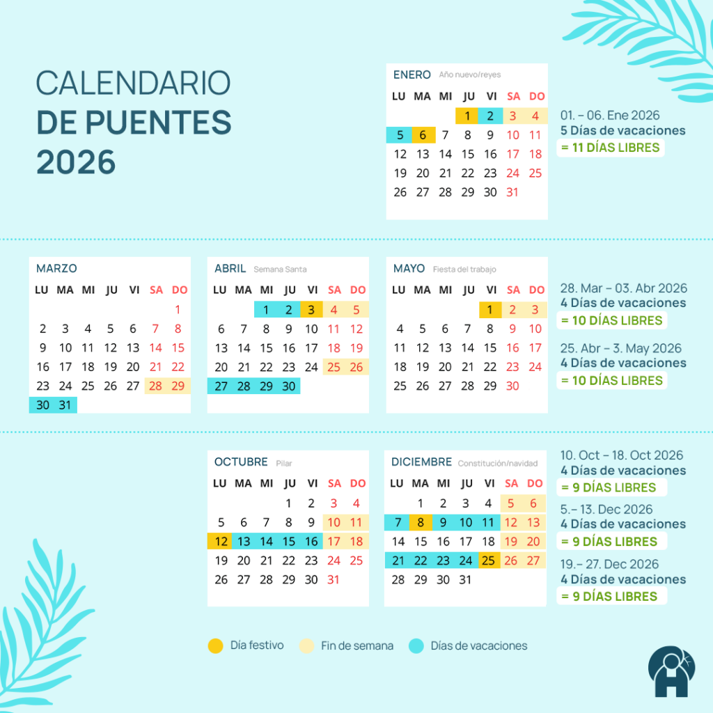 Otras oportunidades surgen en diciembre: algunas autonomías desplazan festivos caídos en domingo, generando un «acueducto» antes de Navidad.