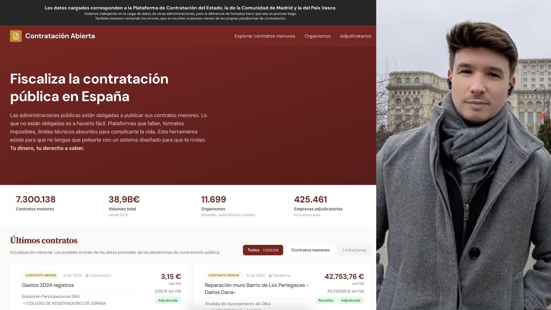 La plataforma integra información de la Plataforma de Contratación del Estado, Madrid y País Vasco, y recientemente Asturias. En una actualización , David detectó contratos sospechosos de fraccionamiento irregular para eludir controles, como compras repetidas sin fechas precisas o formatos incompatibles que complican la revisión. Estos gastos, aunque «legales», son éticamente imperdonables: derroche en tiempos de crisis que suma millones, como sofás de lujo o adjudicaciones a medios sin competencia.