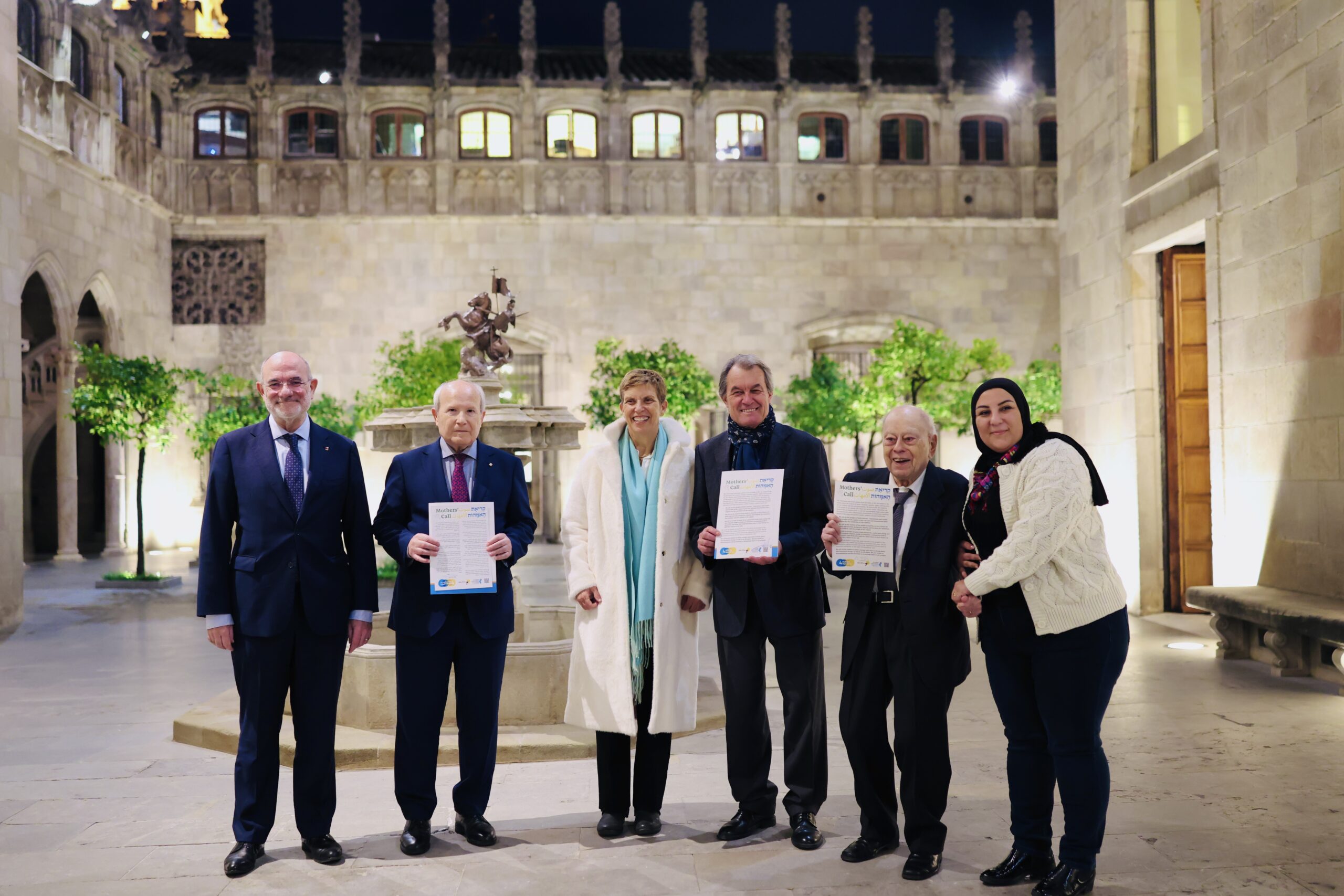La agenda institucional comenzó con una recepción en el Palau de la Generalitat por parte del conseller de Unión Europea y Acción Exterior, Jaume Duch, y un encuentro histórico con los expresidentes Jordi Pujol, José Montilla y Artur Mas. En esta reunión se constató el compromiso compartido por las instituciones catalanas con el diálogo y la paz en el conflicto de Oriente Próximo.