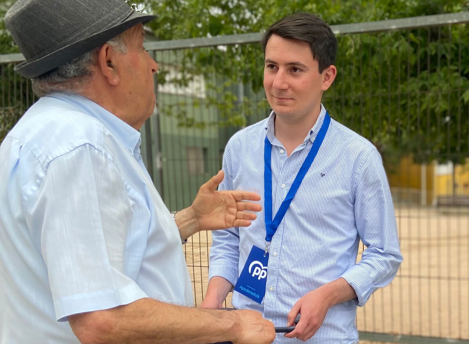 El presidente del PP de Vic y diputado en el Parlament, Pau Ferran, charla con un ciudadano.
