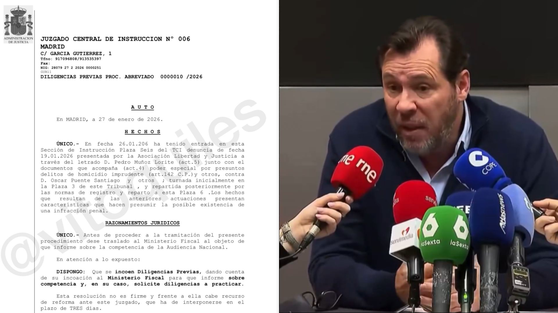 🔴 #ÚLTIMAHORA | La Audiencia Nacional ha abierto diligencias previas contra Óscar Puente por el accidente ferroviario de Adamuz