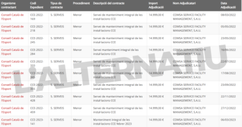 El informe de L’Alternatiu detalla que la empresa beneficiaria recibió decenas de encargos por importes que rozaban siempre el límite legal permitido para la contratación directa. Esta práctica, estrictamente prohibida cuando el objeto del servicio es recurrente o único, permite sortear la fiscalización y la libre competencia.