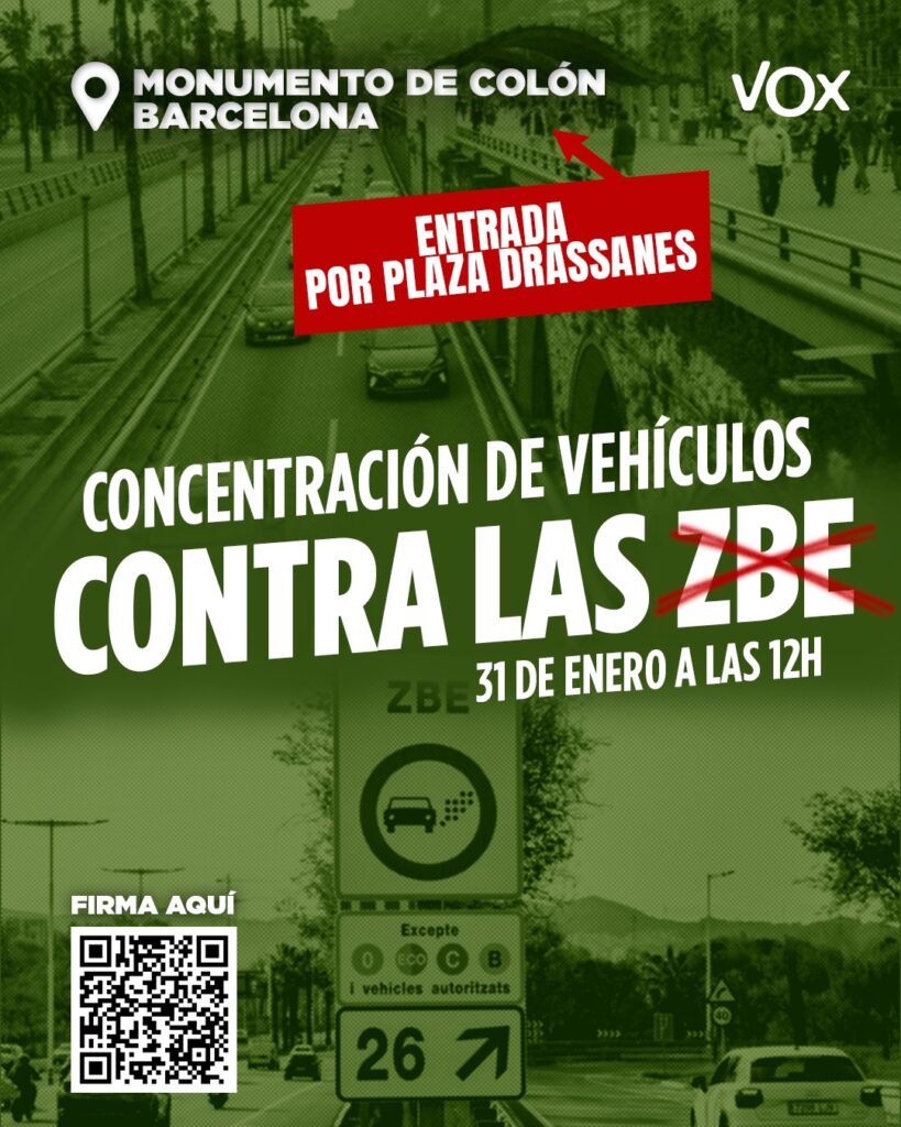 VOX Cataluña ha convocado para este sábado una gran manifestación en Barcelona contra la imposición de las zonas de bajas de emisiones, más conocidas por sus siglas como ZBE. La protesta se articulará mediante 10 columnas de vehículos procedentes de diferentes zonas de Cataluña y que confluirán en la plaza Colón.