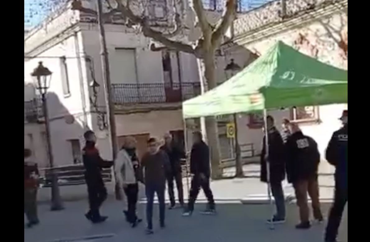 Separatistas intentan boicotear una carpa de VOX en Arenys de Munt con esteladas y cobardes ataques.