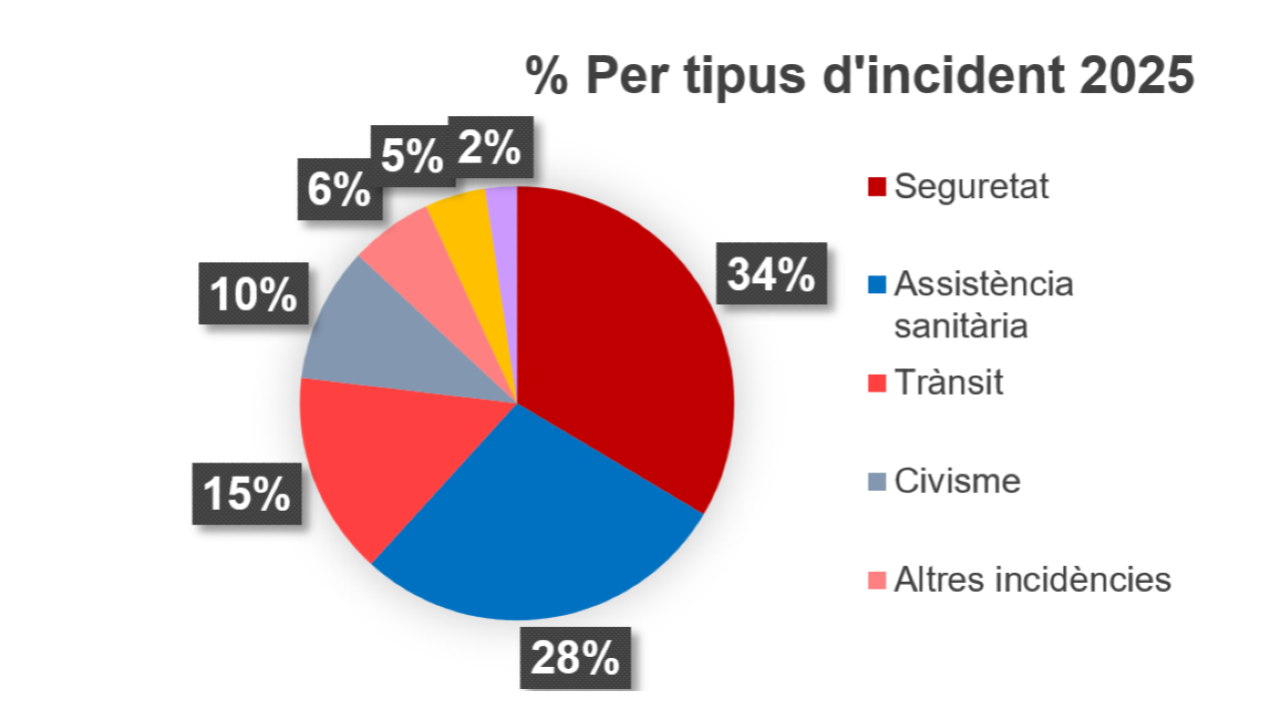 En cuanto a la tipología de los incidentes, la seguridad ciudadana sigue siendo el motivo principal de contacto, representando el 34% de las llamadas. Le siguen la asistencia sanitaria (28%), las incidencias de tráfico (15%) y los problemas de civismo (10%).