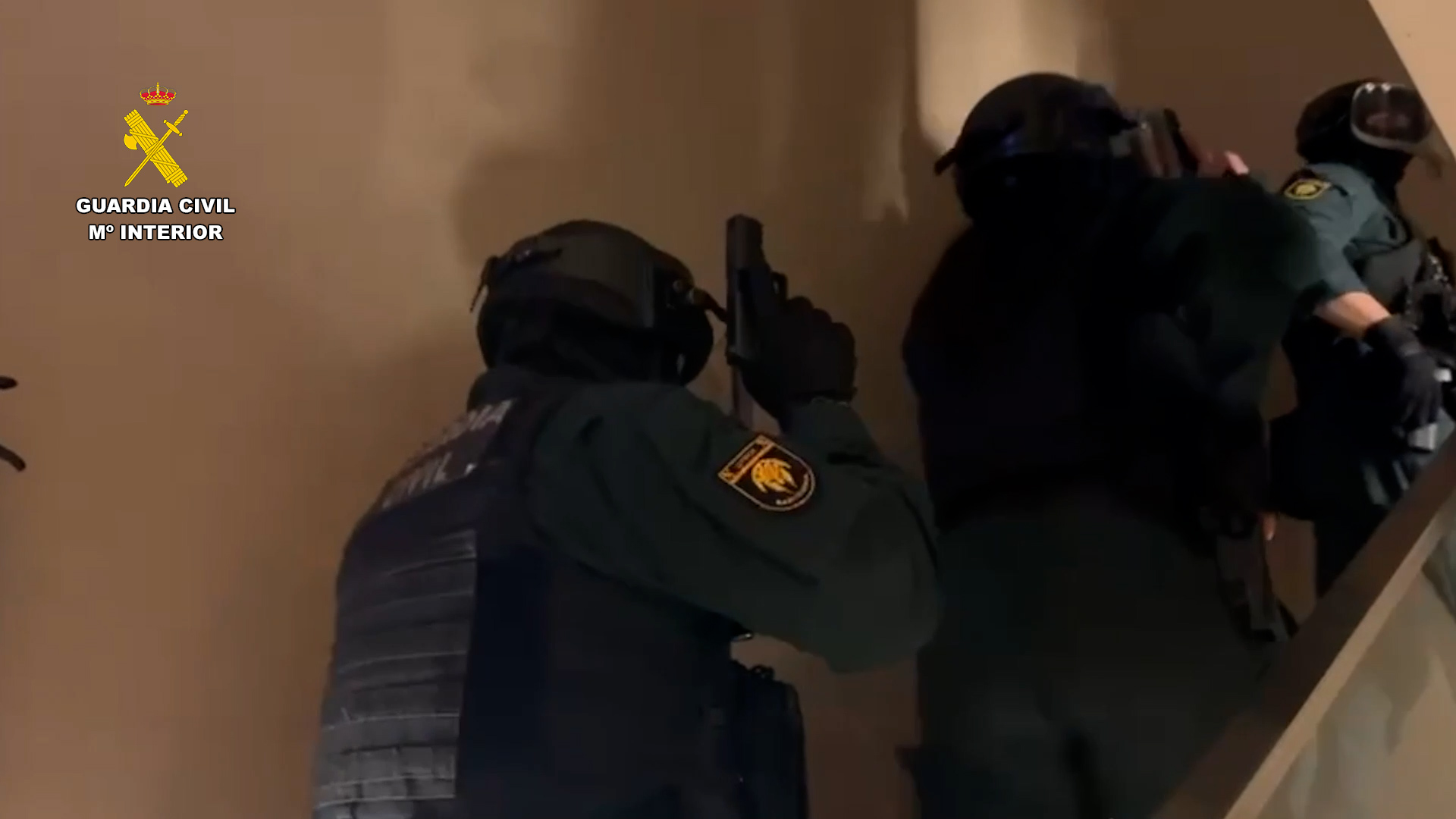 Momento en el que agentes de la Guardia Civil acceden a uno de los inmuebles registrados en Barcelona para desarticular la trama criminal.